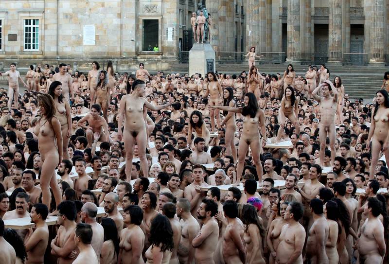 Oltre 6mila persone nude, sia uomini che donne, in piazza Bolivar a Bogotà in posa per il fotografo statunitense Spencer Tunick. Hanno dovuto superare pudore e freddo i partecipanti, dal momento che l'artista, come d'abitudine, ha realizzato i suoi scatti all'alba