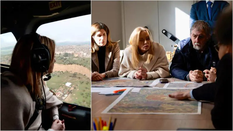 La premier prima sorvola in elicottero le zone colpite dal maltempo. Il presidente della Regione Sicilia, Schifani: "Situazione senza precedenti". Aperto un fascicolo per disastro colposo