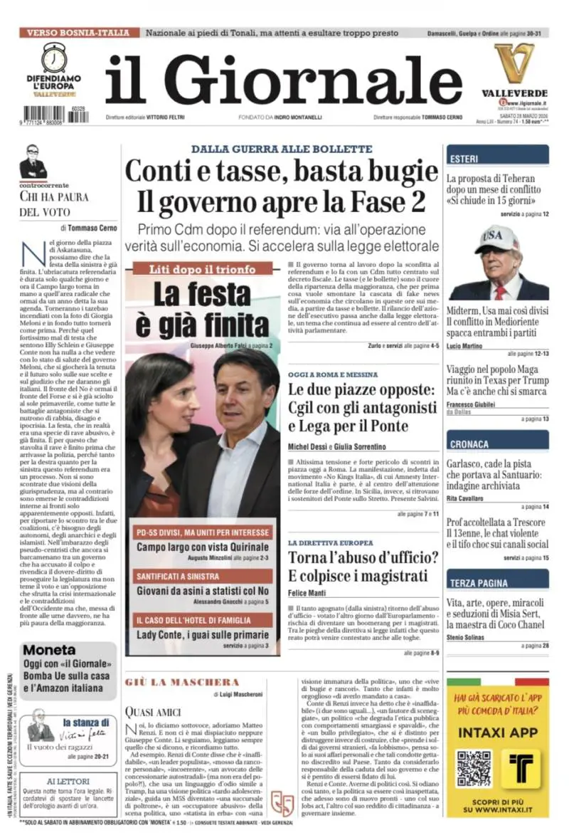 Primo Cdm dopo il referendum; il campo largo sta già scricchiolando: liti dopo il trionfo; “Si chiude in 15 giorni”: l’Iran rilancia dopo un mese di conflitto