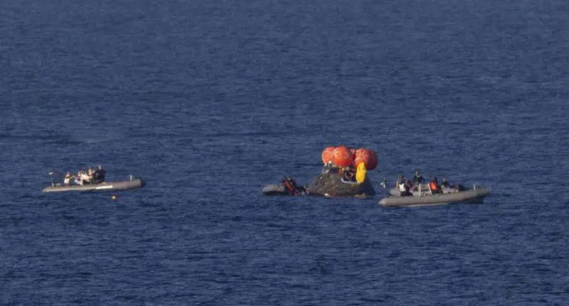 La capsula Orion è ammarata nell'oceano Pacifico, al largo delle coste della California, a Sud-Ovest di San Diego. Si conclude così la missione Artemis II. Ecco le immagini