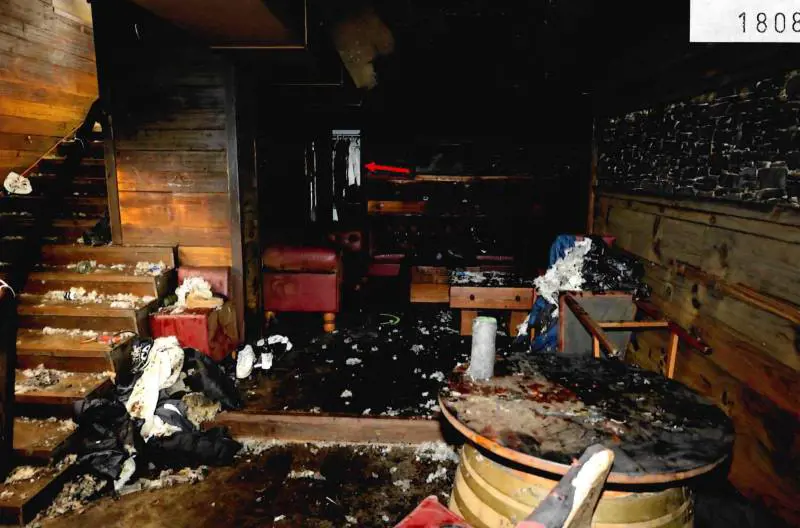 La devastazione del Constellation dopo il rogo di Capodanno, con gli arredi gravemente danneggiati, il soffitto distrutto e i resti della festa trasformata in tragedia. La drammaticità dell'incendio che ha ucciso 41 persone e ferito gravemente 115 giovani è documentata da un servizio fotografico realizzato dalla polizia cantonale del Vallese il primo gennaio, dopo poche ore dalla strage. Tra gli scatti, raccolti in un dossier che figura tra i documenti dell'inchiesta, c'è anche un'immagine di dettaglio del chiavistello con cui era stata chiusa la porta di sicurezza che ha impedito la fuga di alcuni clienti, ritrovati morti davanti all'uscita.