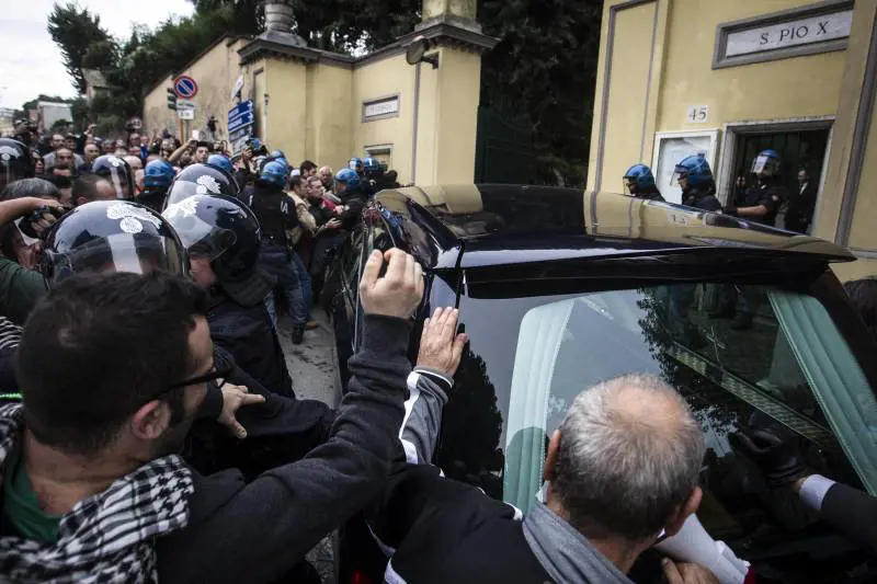 Momenti di forte tensione ad Albano Laziale, dove si sono svolti i funerali di Erich Piebke. Le esequie, in forma privata, all’istituto Pio X dei padri Lefebvriani