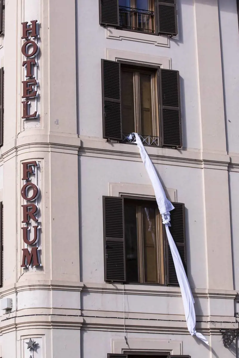 Grillo braccato in albergo: cala le lenzuola dalla finestra