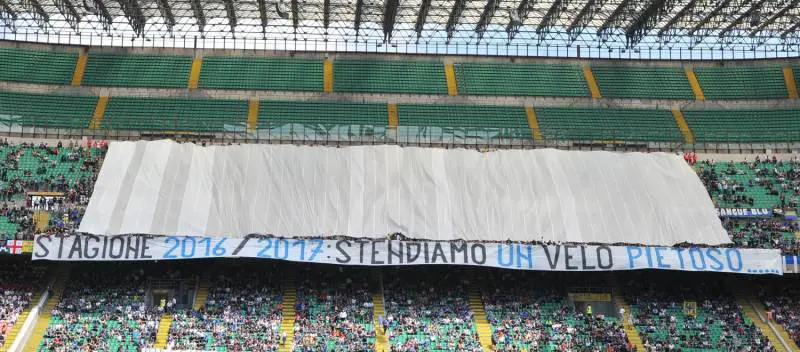 Dura protesta della Curva dell'Inter a San Siro. I tifosi nerazzurri a metà del primo tempo della sfida contro il Sassuolo, sul punteggio di 0-0, hanno abbandonato per protesta lo stadio lasciando uno striscione con scritto: "Visto che il nostro sostegno non ve lo potete meritare... oggi vi salutiamo e andiamo a mangiare".
