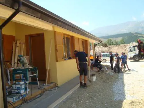 L'Aquila - Sono trentine le prime 43 casette in legno, che sostituiranno per alcune famiglie di San Demetrio e dell’Aquila le tende in cui erano sistemate da dopo il terremoto. Per inaugurare le prime nove, a Stiffe, frazione di S.Demetrio, è intervenuto oggi intorno alle 11 il presidente della Provincia autonoma di Trento, Lorenzo Dellai, con il vicepresidente Alberto Pacher, insieme al sindaco del Comune abruzzese, Silvano Cappelli, al vicecapo della Protezione civile nazionale, Bernardo De Bernardinis e altre autorità locali.