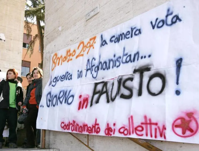 Striscioni contro l'ex segretario di Rifondazione comunista sono stati sistemati all'ingresso della Facoltà di Lettere con le scritte: «8 marzo 2007. La Camera vota sull'Afghanistan: giorno inFausto».