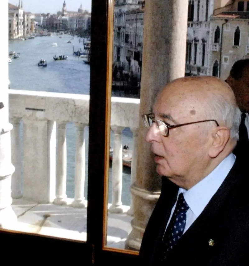 Napolitano avrebbe dovuto entrare a Cà Foscari dalla monumentale porta d'acqua sul Canal Grande invece entrerà da quella che, sul retro del palazzo, si apre nel cortile. Il capo dello Stato, nella breve passeggiata ha colto di sorpresa veneziani e turisti, colpiti dalla sua presenza e da quelle del presidente del Veneto Galan e del sindaco della città lagunare Cacciari.
