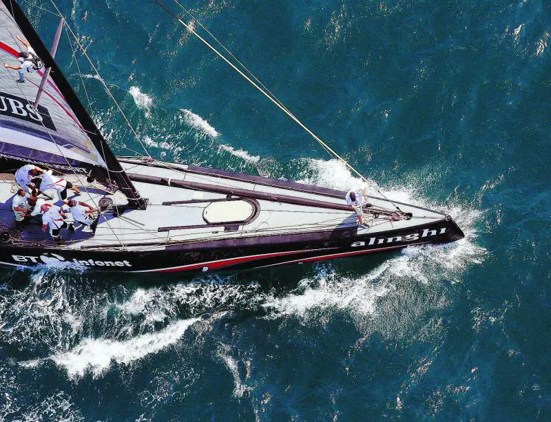 Virata dopo virata è passato davanti. Mettici pure un salto di vento dalla parte giusta, la sinistra questa volta, ma insomma, proprio nella fase cruciale della regata Alinghi ha guadagnato con facilità quel che le serviva. In navigazione Ernesto Bertarelli si sbizzarrisce con la pistola laser per capire velocità e angolo dell'avversario. Il timoniere Ed Baird è ingobbito da uno zainetto misterioso: un filo lo collega agli occhiali su cui lui può leggere tutti gli strumenti come fosse il pilota di un cacciabombardiere carico di bombe intelligenti, indirizzate dal suo sguardo. Per fortuna Brad Butterworth, arguto skipper e tattico di queste diavolerie se ne frega... al suo collo pende una bussoletta da tattico da ottanta euro al supermercato del marinaio, per «chiamare» le virate ogni tanto le dà una sbirciatina e poi usa tanto sesto senso, la sua dote migliore. Ma le meraviglie di Alinghi non si fermano qui, ormai le leggende hanno superato la realtà.