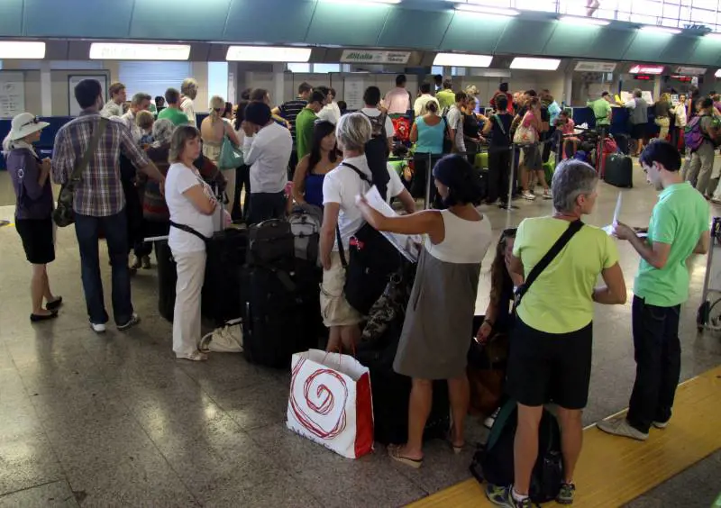 Roma - Voli Alitalia in overbooking (eccedenza di prenotazioni) e decine di passeggeri a terra all'aeroporto di Fiumicino. E' la situazione che si è verificata questa mattina per un centinaio, che dovevano partire con voli Alitalia diretti a Istanbul, Caracas, Boston, Atene. Nei periodi si grandi esodi feriali è un disservizio che si ripete con frequenza e riguarda molte compagnie aeree sia in Italia che all'estero.