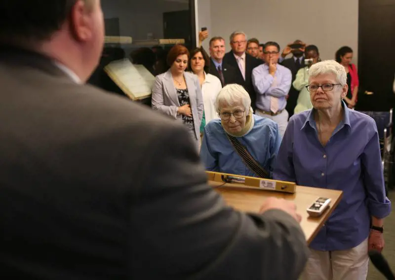 E a Niagara Falls, le famose Cascate del Niagare che si trovano proprio a cavallo tra il Canada e New Yor, circa 150 persone si erano radunate per un ricevimento in vista delle nozze di Kitty e Cheryle, due attiviste per i diritti gay. La coppia di Buffalo, secondo città dello Stato, ha voluto che il sindaco Paul Dyster le dichiarasse sposate un minuto dopo la mezzanotte.