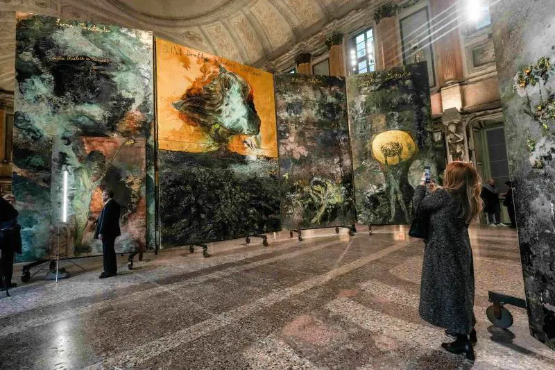 C’è un punto preciso, entrando nella Sala delle Cariatidi di Palazzo Reale a Milano, in cui si ha la sensazione fisica che il tempo smetta di procedere in avanti e cominci invece a depositarsi, a stratificarsi. Le pareti scarnificate, le ferite lasciate dai bombardamenti del 1943, i corpi mutilati delle cariatidi che un tempo sostenevano la balconata non sono semplice contesto: sono materia viva, memoria incorporata nell’architettura. È in questo spazio, già carico di una storia di distruzione e sopravvivenza, che Anselm Kiefer ha scelto di collocare Le Alchimiste (dal 7 febbraio al 27 settembre 2026), una mostra che non si limita a essere vista, ma va attraversata come un paesaggio mentale. Più che un’esposizione, è un’esperienza iniziatica, un racconto che si costruisce per accumulo, per sedimentazione, chiedendo allo spettatore tempo, attenzione, disponibilità a sostare nell’oscurità.
