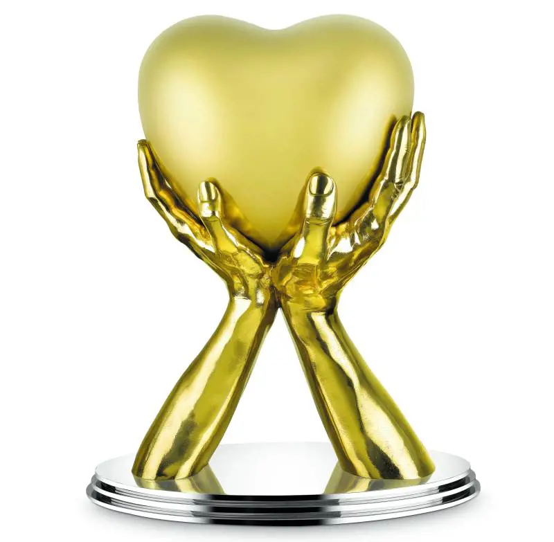 Di Quinn conosciamo da tempo la potenza comunicativa e l'immediatezza del messaggio: le sue mani, candide e giganti, sono più volte emerse in Laguna, prima per sorreggere Ca' Sagredo, sul Canal Grande, poi all'Arsenale di Venezia, creando un suggestivo ponte che poi, in forme simili, è approdato a Milano, a Muscat, in Oman, e poi ancora in giro per l'Italia e infine a Helsinki, in Finlandia. Queste mani tese o intrecciate sono la firma di Lorenzo Quinn e le ritroviamo anche a Cortina, in formato da interni.