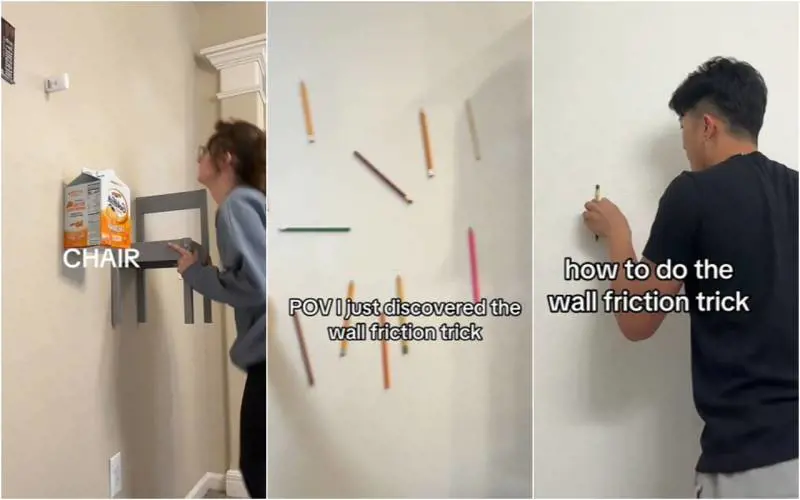 Il wall friction è un trend nato su TikTok che sfrutta un semplice gioco di attrito e posizionamento per creare l'illusione che oggetti di uso quotidiano restino attaccati al muro senza alcun supporto visibile. Penne, matite, flaconi, scarpe, sedie e persino piccoli mobili vengono "incastrati" contro la parete in modo strategico - su superfici non perfettamente lisce - spesso aiutandosi con la pressione del corpo. Il risultato è un effetto visivo sorprendente, studiato per durare giusto il tempo di un video e alimentare la curiosità di chi guarda, più che per sfidare davvero la fisica. Nessun trucco, nessun inganno assicura Olly, una ragazza americana che ha realizzato uno dei primi video di wall friction, che ha collezionato oltre 500mila visualizzazioni in poche ore: "Premendo con forza un oggetto piatto contro una parete ruvida si genera attrito e calore, sufficienti ad ammorbidire temporaneamente la vernice e creare una lieve adesione. Un effetto temporaneo ma abbastanza duraturo da consentire all'oggetto di rimanere attaccato alla parete e alimentare l'effetto sorpresa".