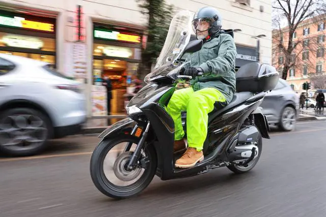 Presente la Smart Key, la presa USB nel vano anteriore e un livello di finiture che cresce ulteriormente, soprattutto nelle plastiche e negli accopiamenti. Fondamentale, in una giornata così, anche l’equipaggiamento. La nostra giacca Dainese in versione urban si è dimostrata impeccabile: nessuna infiltrazione, ottimo isolamento termico, comfort costante e tanta protezione. Calda e asciutta fino alla fine della prova, ha superato il banco romano a pieni voti, esattamente come lo scooter. Rispetto alle versioni precedenti, l’SH 150 MY 2026 cresce nei dettagli e nella percezione di qualità complessiva. È un’evoluzione coerente, che non snatura un progetto vincente ma lo rende più maturo, più raffinato, più solido. L’ergonomia resta uno dei suoi assi nella manica: tutto è dove te lo aspetti, tutto funziona con immediatezza. Capitolo prezzo: il nuovo SH 150 è proposto a partire da 4.090 euro. Una cifra che trova senso nella qualità complessiva del progetto, nella dotazione e in un valore residuo che, storicamente, resta tra i più alti del segmento. C’è poi un aspetto che vale la pena sottolineare, soprattutto oggi. L’SH non è solo uno scooter di successo: è un prodotto autenticamente Made in Italy. Dall’idea progettuale alla realizzazione finale, passando per lo sviluppo industriale nello stabilimento di Atessa, è una storia italiana che continua a funzionare. Una storia fatta di competenza, continuità e capacità di ascoltare il mercato senza inseguire mode passeggere.