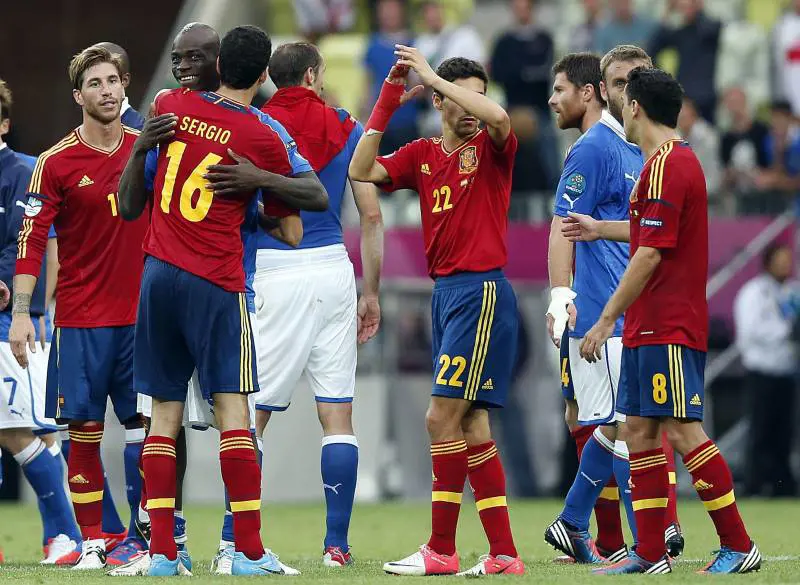 Al 30' st bel contropiede della Spagna: palla a Torres (subentrato a Fabregas) che penetra in area, ma Buffon si trasforma in libero e, con i piedi, gli toglie la sfera spazzando in rimessa laterale. Al 33’ st Di Natale al volo aggancia uno splendido assist di Giovinco (entrato al posto di Cassano al 20’ st) e sfiora il raddoppio. Torres più di una volta crea scompiglio nella difesa azzurra e mette in seria difficoltà De Rossi, in un ruolo non suo. L'Italia è in affanno ma riesce a tenere il risultato.