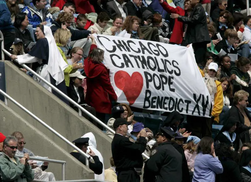 Nello storico stadio degli Yankees, la squadra di baseball più famosa e gettonata degli States, papa Ratzinger ha celebrato, tra circa 57 mila fedeli, la sua messa di addio al popolo statunitense, in una scenografia di grande effetto. L'imponente palco con l'altare, pavesato in giallo e bianco in omaggio ai colori vaticani, è stato issato al centro del diamante del campo di gioco, e prima dell'arrivo del Pontefice, una serie di cantanti e gruppi gospel si sono susseguiti in uno spettacolo degno di Broadway. Con l'arrivo della papamobile, l'atmosfera si è fatta più spirituale ma non meno entusiastica. Boati e applausi a non finire hanno accolto anche qui Benedetto XVI.