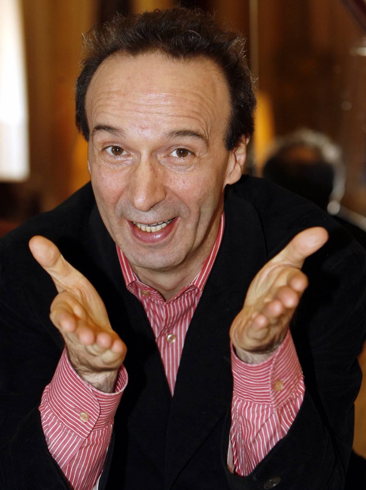 Benigni si aggira furtivo sul palco, si asciuga il sudore, divaga con i personaggi di Vergaio, perde il filo. «Dov’eravamo rimasti? Ah, già, Berlusconi. Basta che pronunci il nome e mi ripiglio subito. Perché per noi comici Silvio è una grazia. Ora che non c’è più siamo disoccupati, io leggo Dante, Paolo Rossi canta a Sanremo, Sabina Guzzanti recita l’Ariosto, il Tasso. Un disastro. Torna Silvio! Dove lo trovi uno che quando parla si paragona a Cristo. Quando cerca il suo erede vorrebbe fare come Gesù che chiama Pietro e gli dice: “Tu sei Pietro e su questa Pietra...”. Lui ci ha provato con Fini: tu sei Fini e su questa fine... Niente. Allora ha chiamto Casini: tu sei Casini e su questo... Avanti un altro: Schifani. Tu sei Schifani e... Con Maroni non ci ha nemmeno provato. Così l’erede non salta fuori. E intanto Prodi resiste. Oddio, resiste?! È caduto anche lui. Per la verità, bene in piedi non l’ho mai visto. Ha un sacco di guai, volevano farlo passare per una spia del Kgb, ma l’avete visto, con quella faccia... Prodi spia del Kgb è come Luxuria spia del Vaticano. Per far approvare la Finanziaria Romano andava a messa tutti i giorni a chiedere la grazia per i senatori a vita. Alla fine ha detto alla Turco di elevare la modica quantità della cannabis fino a 40 spinelli. Così, tutti “fatti”, hanno votato la Finanziaria. Nelle foto si vede la Montalcini mentre vota in una nuvola di fumo con una faccia da fricchettona».