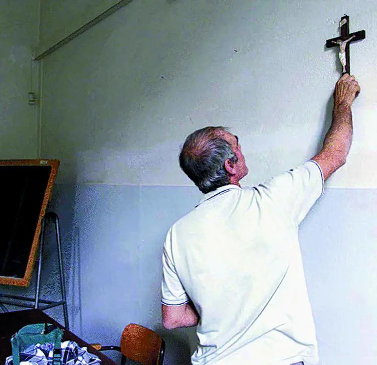 Boccia il crocifisso, ma se lo tiene in ufficio