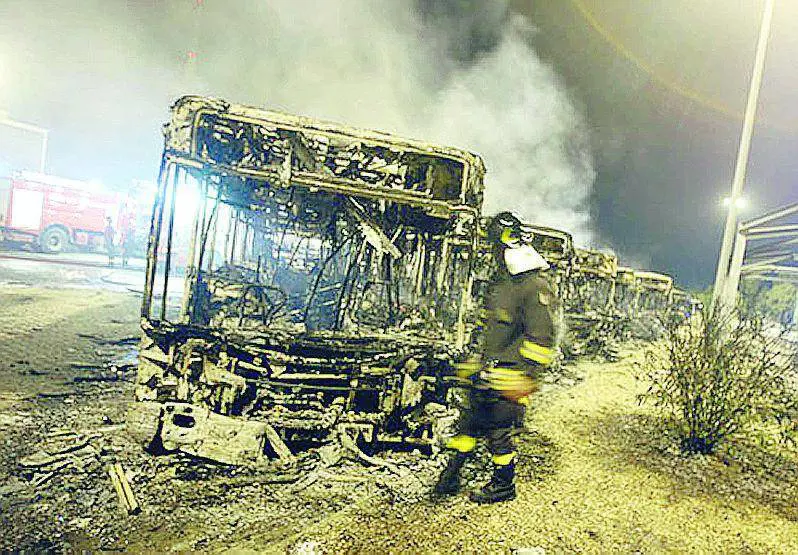 Brucia deposito Atac: tre feriti e 24 autobus danneggiati