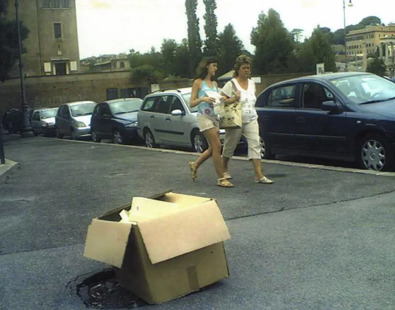 Cè chi, invece di andare al mare, questestate ha fotografato le buche. Quelli dellassociazione BukenBike una domenica hanno perlustrato dalla mattina alla sera le mille strade della capitale, dalla Nomentana a Tor de Schiavi, da San Basilio a Cortina DAmpezzo. Ne è uscito un dossier fotografico, consultabile sul sito www.bukenbike.it, che attribuisce a Roma il titolo di capitale mondiale delle buche. Il tour inizia da piazza Sempione, nel IV Municipio. A dare il benvenuto ai girini è il centro di piazza Menenio Agrippa, nel cuore di Monte Sacro, con una bella toppa dasfalto, che con il caldo, è in avanzato stato di disfacimento. Una toppa ancora più grande semi-liquefatta si incontra in via Monte Subasio. In via Val Trompia sampietrini e asfalto a go-go, uno sullaltro. Una vecchietta col bastone tenta a fatica di attraversare via Val di Fiemme, valicando dossi e una ragnatela di buche. Non si presenta meglio via Nomentana, dove sul manto sembrano in atto piccole eruzioni vulcaniche. Poi via Chisimaio, via Scirè, dove non cè un solo metro di asfalto liscio. Lungo la Tangenziale Est, verso la Prenestina, quelli di BukenBike fotografano una serie di cartelli stradali rivolti verso il muro o sparsi al suolo. Si prosegue per Centocelle, si valica Tor de' Schiavi. Ovunque la stessa immagine: dossi, tombini malmessi, asfalto liquido. Le buche di via Morrovalle, a San Basilio, non hanno nulla da invidiare a quelle di Corso Francia. «Ormai la buca è diventata per Roma un simbolo come gatti e acquedotti, botticelle e grattachecche», ironizza a denti stretti il presidente di BnB, Massimo Mancini.