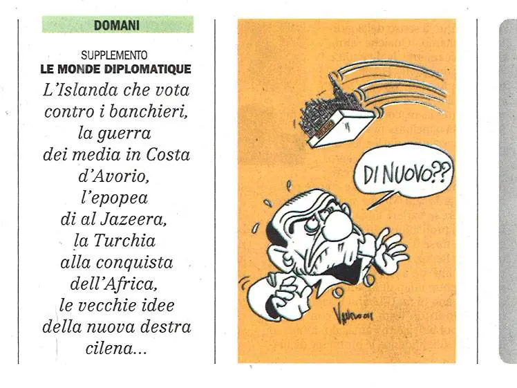 Ma una vignetta di gusto molto dubbio firmata Vauro: c'è il Cav preoccupato che cerca di scostarsi da una statuetta del Duomo che gli piove in testa. "Di nuovo?", si chiede Berlusconi. Eppure, nemmeno questo disegno di cattivissimo gusto, riesce a stupirci. Perché, dopo tutto, è sempre la solita sinistra "moderata" che dà al premier dell'"estremista"...