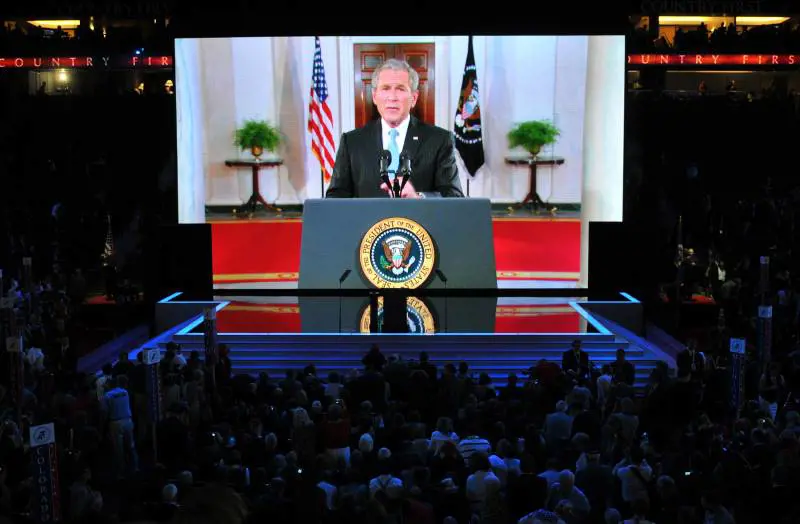 L'appoggio di Bush Bush, comparso in video sul gigantesco schermo allestito nel Xcel Energy Center, ha definito McCain "pronto per la Casa Bianca". "In un mondo pericoloso - ha detto il numero uno della Casa Bianca - l'America ha bisogno che nello Studio Ovale ci sia qualcuno che sa che per proteggerla bisogna stare all'offensiva". Le parole pronunciate questa notte da Bush a favore del senatore dell'Arizona hanno molto di inconsueto. Il presidente americano le ha, infatti, pronunciate in collegamento via satellite, parlando di fronte alla telecamere, dalla Casa Bianca, dietro un podio: è il set degli appelli alla nazione, non quello degli attacchi di partito: "Se l'Hilton di Hanoi non ha spezzato la determinazione di John McCain a fare la cosa giusta per il Paese - ha detto il presidente riferendosi al campo di prigionia del Vietnam dove il senatore dell'Arizona è stato prigioniero e soggetto a torture per anni - non ci riuscirà neppure la sinistra arrabbiata". Bush, che ha rinunciato a salire sul podio di Saint Paul per l'emergenza uragani sulla costa del Golfo del Messico, ha sottolineato che "McCain è pronto per guidare la Nazione".