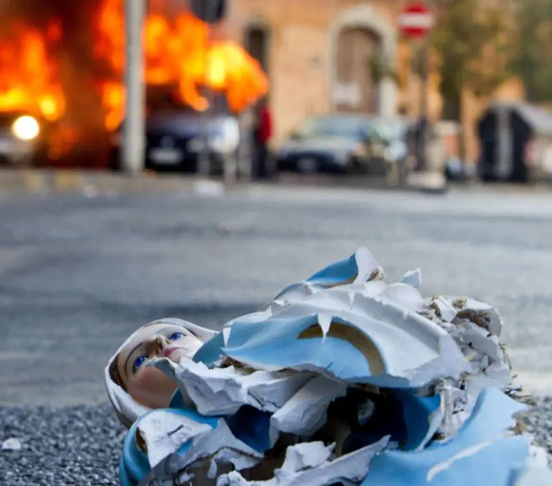 Limmagine della statua distrutta e calpestata ieri a Roma ci rinvia a quelle figurazioni romanzesche, dove la distruzione, prima che nellatto materiale che la compie, consiste nel fatto che qualunque cosa vale qualunque altra cosa: unautomobile, una sigaretta, una statua di Maria, un computer.