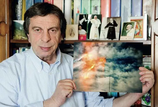 Rinaldo - è così che vuol essere chiamato - non ha solo visto. Ha anche fotografato. Su pellicola. Quando gli nomino Photoshop, mi guarda attonito: «Cos’è?». E dopo che ho schiacciato il tasto Ctrl sul suo portatile nuovo di zecca, s’inquieta: «Adesso che hai fatto? Sei sicuro che il computer funzioni come prima?”». Insomma, non saprebbe usare un programma per il ritocco delle immagini. «Ho fotografato nel cielo di Nashville il rosso fuoco degli attentati alle Torri gemelle quattro anni prima che accadessero, guarda quest’esplosione mostruosa, lo annunciai in Argentina a Cronica Tv, in un programma condotto da Anabela Ascar, e con l’aiuto della titolare di una boutique di Miami scrissi a Ted Kennedy, per mettere in guardia il Senato degli Stati Uniti, ma quell’ubriacone nemmeno mi rispose. Ho fotografato Sirio nella notte di Pasqua: ecco qui la stella trasformata in una croce, presto tornerà nel cielo e ci resterà a lungo affinché il mondo creda. Ho fotografato l’acqua in fiamme nella cavità buia della sorgente di Lourdes, con al centro un cuore incandescente, lo vedi?». Vedo.