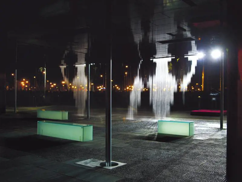 Saragozza - Un edificio d'acqua digitale. Flussi e cascate che appaiono e scompaiono attraverso la sola interruzione interattiva: luci liquide capaci di riprodurre testi e immagini su pareti inesistenti. Si tratta del Digital water pavilion (DWP) ideato e creato dallo studio carlorattiassociati di Torino per l'expo di Saragozza.