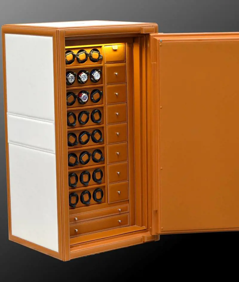 Tutto ebbe inizio in virtù di una semplice, quanto geniale intuizione di Sandro Colarieti, compianto fondatore della Scatola del Tempo. Era il 1990 e l'azienda appena avviata di Albese con Cassano (Como), specializzata nella produzione di contenitori porta-orologi di manifattura artigianale, brevettò il «rotore»: micro-motore comandato da un chip che consente al porta-orologi di ruotare e mantenere in carica i segnatempi automatici quando non indossati. Da quel momento, con la «benedizione» di Patek Philippe, il successo divenne planetario e, oggi, sono oltre 50 i modelli sul mercato, tutti Made in Italy, a eccezione dei micro-motori, realizzati in Svizzera. La customizzazione del prodotto è divenuta una strategia centrale per Scatola del Tempo, come conferma Cristiana Colarieti, figlia di Sandro, oggi al timone: «Gli articoli su misura costituiscono un progetto impegnativo e strutturato, che include anche i nostri mobili blindati. Abbiamo sviluppato una divisione interamente dedicata a progetti personalizzabili. Il cliente, ora può scegliere numero dei rotori, pellame da usare e colore, disposizione dei cassetti e dimensioni. Inoltre, siamo in grado di collaborare con studi di architettura e interior designer: chi sceglie i nostri prodotti vuole il meglio e noi siamo in grado di offrirglielo». Ne è un esempio la Time Safe Oversize, modello in cui 21 sedi rotanti (in gruppi di 3 indipendenti l'uno dall'altro e programmabili), con relativi selettori dei tempi di rotazione nell'arco delle 24 ore e cassetti multiuso adiacenti, sono inserite all'interno di casseforti interamente rivestite in pelle con cuciture a vista, frutto della maestria di abili artigiani pellettieri.