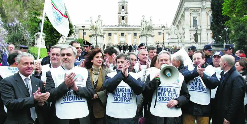 Arrivato in piazza del Campidoglio, il candidato del Pdl è stato accolto da un coro di manifestanti: «Alemanno sindaco de Roma». «Più di 3000 persone hanno partecipato a questa iniziativa - ha detto lex ministro di An - abbiamo dato un segnale di liberazione, di riappropriazione delle nostre strade. Le vogliamo senza degrado ed insicurezza, vogliamo essere padroni a casa nostra. Sulla sicurezza dobbiamo dare una svolta a questa città». La manifestazione è partita dal XVI municipio, quartiere Marconi, «un quadrante ad alto rischio sicurezza», ha detto il senatore Andrea Augello citando alcuni dati. «Il record per i reati lo detiene il I municipio ma nel XV e XVI nel 2007 ci sono state 315 rapine e 8000 furti, questo significa che qualche migliaio di criminali è allassalto di questo territorio». Tra i presenti anche la candidata alla Provincia Roberta Moriccioli, Fabio De Lillo, Loreno Bittarelli e i candidati presidenti del XV municipio Marco Palma, del XVI Beatrice De Bono e del I Laura Marsilio. Lungo il percorso della «catena umana» si sono esibite anche 2 bande musicali. Di grande successo, parla Marco Marsilio, capogruppo uscente di An al Consiglio comunale. «Più di tremila persone contro lillegalità e la violenza, di cui sempre più spesso sono vittime i cittadini di questa città.