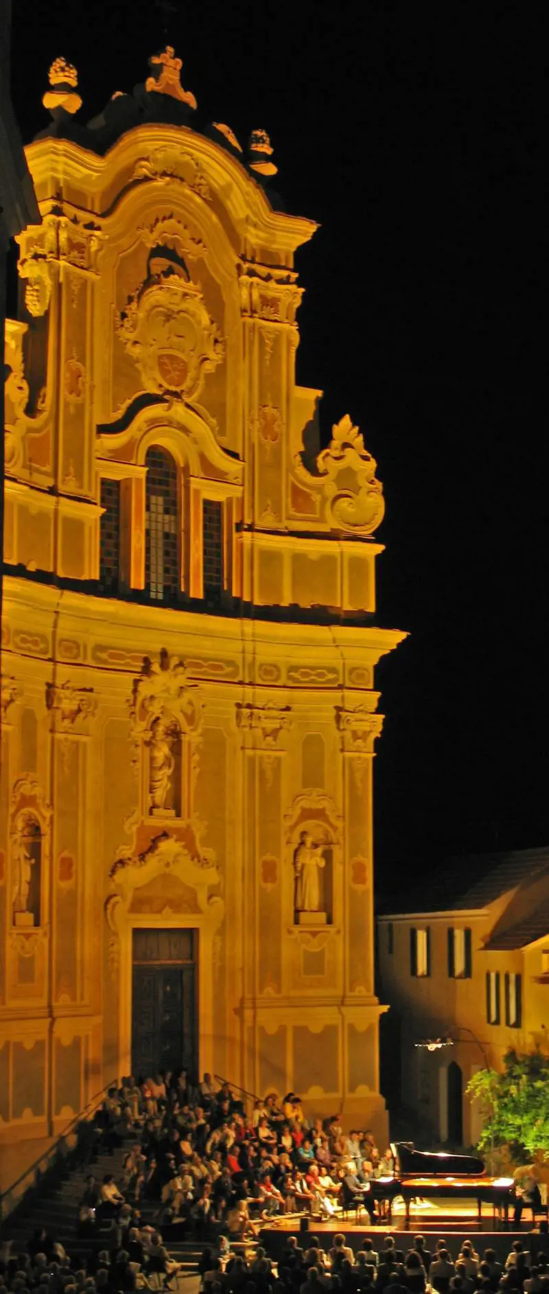 Era il 1964, ma ancora oggi è così. I concerti iniziano quest'anno il 5 luglio (tutti alle 21.30) con Viktoria Mullova al violino - la più elegante, raffinata, e soavemente espressiva violinista del mondo, secondo il Chicago Tribune - e Ottavio Dantone al clavicembalo, con un programma interamente dedicato alle Sonate di Bach. Secondo appuntamento lunedì 12 con il Récital di pianoforte di Francesco Piemontesi, che eseguirà Haendel, Bach, Brahms, Liszt; si prosegue giovedì 15 con Ivano Battiston alla fisarmonica e Marina Popadic al pianoforte, che proporranno brani di Piazzola. Mercoledì 21 un altro Récital di pianoforte, protagonista Jinsang Lee, primo premio al concorso «Geza Anda» di Zurigo nel 2009; in programma Chopin e Schumann. Concerto jazz per martedì 27 con Francesco Cafiso (sassofono), nominato da Umbria Jazz «ambasciatore del jazz italiano nel mondo» e Dino Rubino (pianoforte), altro impressionante talento del genere, che eseguiranno brani di autori vari.