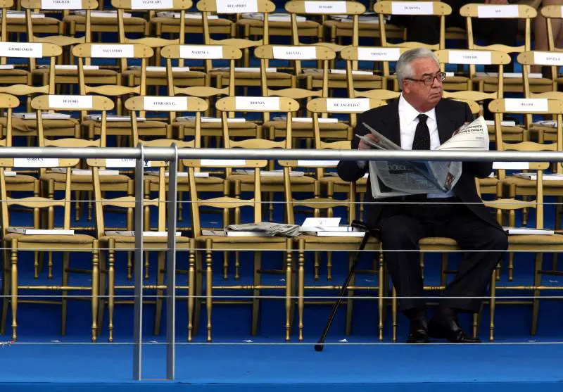 Roma - Piazza del popolo, caffè Rosati. Il «dottore» pranza sempre al primo piano, saletta privata, del resto è il padrone di casa qui, Giuseppe Ciarrapico, imprenditore dell’acqua e poi della sanità, editore, ex patron della Roma, infine senatore, si dice di lui: fedele a Giulio (Andreotti) e alla Fiamma. La pistola sul tavolo non c’è, è già qualcosa. «È una leggenda, che usi accogliere così gli ospiti. E poi sparare è una cosa seria, si fa solo se occorre». Pranza alle quattro del pomeriggio oggi. Prima la fiducia in Senato sul Milleproroghe, poi, alle 15, Silvio Berlusconi lo ha convocato a Palazzo Grazioli, 24 minuti di colloquio.