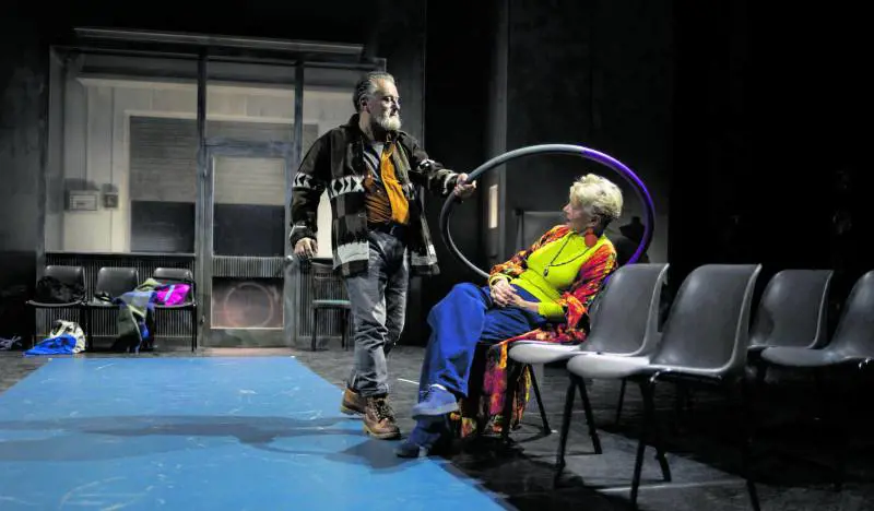 Noi conosciamo la funzione sociale del teatro, lo si fa con i carcerati, con i malati di mente, con chi ha problemi di comunicazione, perché non dovrebbero farlo anche loro? Il pubblico si trova dinanzi a personaggi che hanno, alle spalle, matrimoni falliti, difficoltà sentimentali, oltre che di lavoro, sconfitte professionali e familiari. Annie Baker sa scegliere le sue creature, le colloca, attraverso i sui testi, in luoghi alquanto chiusi, come piccole stanze, cliniche, cinema abbandonati, dentro i quali confrontano le loro sconfitte. Lo spazio che ha ideato per "Circle mirror transformation" è quello di una scuola di recitazione, ben scenografata da Guido Fiorato, uno spazio quasi metafisico, alquanto allettante per coloro che lo frequentano, con parecchi luoghi deputati, ricco di oggetti, utili per gli esercizi, a cominciare dai cerchi (circle), quelli dell'hula hoop, per intenderci, dagli specchi, (mirror), di piccole pedane.