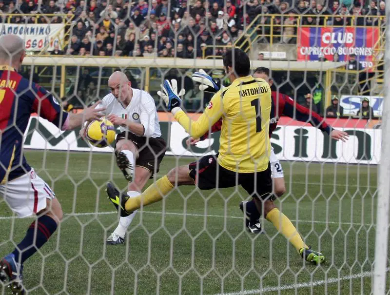 Ieri comunque ennesima prova di razza padrona. Non c'è Samuel che durante il riscaldamento subisce il riacutizzarsi di un precedente problema muscolare al polpaccio sinistro. In compenso c'è Roberto Mancini in tribuna, e poche poltroncine più in là Massimo Moratti. Giù sul prato quasi un minuto di abbracci fra i giocatori dell'Inter e Sinisa Mihajolovic. Inizia così a Bologna, anzi veramente comincia con un minuto di silenzio vero per Giacomo Bulgarelli e tutta la curva Andrea Costa che sbandiera. Il resto è quasi imbarazzante, almeno nei primi venticinque minuti: da una parte l'Inter, dall'altra un'ombra. Da una parte Maicon e Ibra, dall'altra Lanna e Di Vaio. Il Bologna di Sinisa se lo aspettavano tutti massiccio e falloso. Invece non sono riusciti neppure a menare, hanno costruito la loro palizzata due passi fuori l'area di Antonioli e si sono barricati lì sperando che l'Inter finisse le munizioni. E così è finita che tranne un'uscita in volo plastico di Julio Cesar a cinque dal termine del primo tempo, il Bologna non si è mai visto dopo la riga di centrocampo. Chiuso senza ritegno nei suoi quaranta metri. L'Inter ha sbattuto porte e finestre, ha fatto un gran casino con Adriano, Ibra, Muntari e ha dato continuamente l'idea di tirare giù il Dall'Ara a spallate. Ibra al terzo, poi al 10' e al 13', Muntari al 21' clamoroso, e Adriano al 33' che colpisce di destro e manda in curva da posizione splendida. Ma in mezzo a tutto questo un macinare continuo, un rumore che rimbomba nella testa dei bolognesi e li manda in terapia, neppure un tackle vinto o pareggiato, mai tre tocchi di fila, solo raramente uno scambio, veramente imbarazzante. Eppure in tutto questo Antonioli era rimasto inattivo, ma non per modo di dire: dopo il destro di Ibra al terzo minuto, niente di niente e Sinisa cominciava a sentirsi soddisfatto. E il tempo è finito con un'entrata assassina di Zenoni su Ibra che gli ha girato il parastinchi, lo ha messo a terra e ha fatto subito temere per martedì sera in Champions.