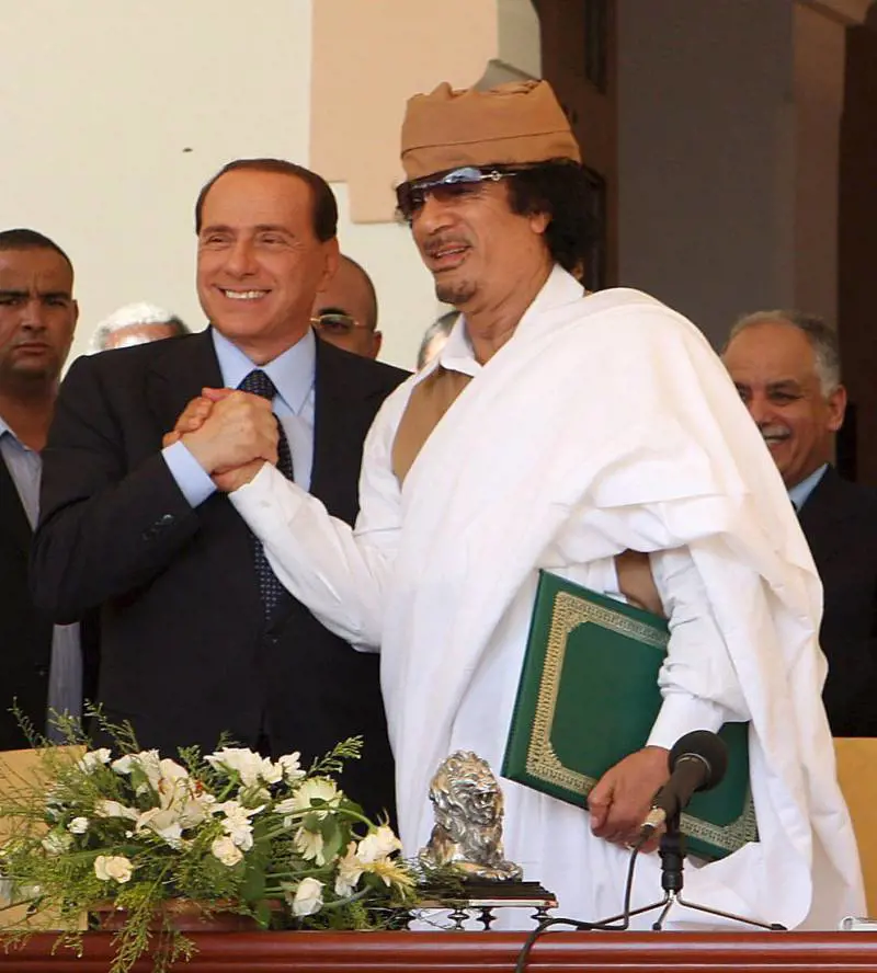 «Accordo storico» convengono all’unisono Silvio Berlusconi e Muhammar Gheddafi, fresco di nomina di «re dei re d’Africa», attribuitogli da 200 capi tribù convenuti a Bengasi per il 49° anniversario della rivoluzione che detronizzò (31 agosto 1969) re Idriss. E se nel testo sottoscritto dai due leader si chiude, «finalmente una pagina del passato, mettendo fine a 40 anni di incomprensioni con un riconoscimento completo e morale dei danni inflitti dall’Italia alla Libia durante l’epoca coloniale», come osserva il premier italiano, c’è anche tanto spazio da dedicare al futuro, previsto nero su bianco: «È una intesa che spalanca le porte per una futura cooperazione e partnership tra Italia e Libia» concede infatti Gheddafi.
