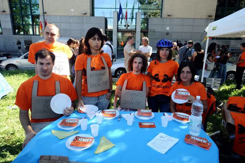 Due uomini e due donne Stamattina alle 10.30 il movimento scuola precaria e il presidio permanente lavoratori hanno annunciato, in una conferenza stampa di fronte all’Ufficio scolastico regionale di via Ripamonti, l’intenzione di avviare lo sciopero della fame: saranno 4 i lavoratori a smettere di mangiare in segno di protesta contro i tagli agli organici, anche se da più parti si chiede di ricorrere a forme di lotta alternativa: Miriam Petruzelli, 34 anni insegnante di sostegno in attesa di nomina e rappresentante del Movimento scuola precaria di Milano, Cristina Virardi, 29 anni, Alessandro Risi, 37 e Davide Bondesan, 28