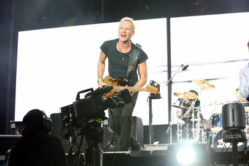 Sting, Stewart Copeland e lo strepitoso chitarrista Andy Summers, un jazzista vestito da rockettaro, lo fanno per venti brani da Message in a bottle alla conclusiva Next to you, circa due ore, con un mostruoso virtuosismo tecnico, una sintonia che si nutre di sguardi e di vecchie abitudini. Quando inizia Every little thing she does is magic loro tre si guardano, sgranano gli occhi, il pezzo stenta a decollare ma poi si riprende con una naturalezza che lascia senza parole. E così la durissima Driven to tears, essenziale, quasi asettica, misteriosa alchimia che vive sul ritmo sincopato della batteria, sulla voce chiusa di Sting, sulla chitarra che si distende in piccoli tocchi che sembrano arabeschi. In tribuna vip c’è chi ascolta incantato, come Nek o Irene Grandi, e chi più distratto come Alba Parietti, Afef e Zebina della Juventus, Jaki Elkann con sua moglie. In platea la gente canta, imperturbabile. Don’t stand so close to me, un coro lunghissimo. Can’t stand losing you, che ritmo. Sting era arrivato pochi minuti prima del concerto, saranno state le 21 o giù di lì, direttamente dall’hotel Golden Palace con tanto di volanti della polizia a fare da scorta. Non ha nemmeno sentito le canzoni di suo figlio Joe, che è sbarcato sul palco con i Fiction Plane per arrostire un po’ di rock insulso e senza traccia. Quando è salito in scena, Sting ha esibito maglietta nera, basso rigorosamente scrostato e consumato ma canzoni nuovissime, eccome. E dopo due ore di show sembravano ancora più giovani e forse questo è il segreto dei Police: hanno scritto brani che miracolosamente vincono la gravità degli anni e si conservano con la stessa energia che avevano quando a inizio anni Ottanta hanno scompaginato le regole del rock. «Qui ci sono 65mila persone, 130mila mani, mostratemi le vostre», urla Sting.