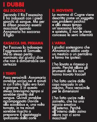 2. Ritiene che l'arma del delitto sia un mestolo o un pentolino, nonostante risulti evidente dalle ferite sulla testa di Samuele che la parte terminale dell'arma avesse tre canali e angoli vivi e rettilinei.