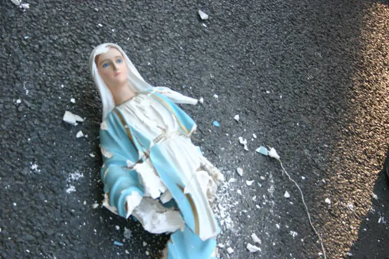 La foto della statua della madonnina in frantumi è una delle immagini che ha segnato la giornata di violenze di ieri. "E' stata offesa gravemente la sensibilità rispetto alla fede dei credenti - ha spiegato il portavoce della Santa Sede - una offesa che si aggiunge alle altre, frutto di una violenza immotivata".