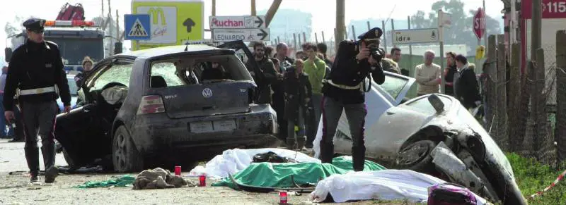 (...) Perrini. Unauto ben conosciuta nella zona in unarea che confina con il nuovo centro commerciale sulla Roma Fiumicino e via della Muratella, Maccarese. «Correva sempre come un pazzo, ogni mattina il suo sport preferito era quello di superare, contromano, le macchine che si trovava davanti», ricordano gli abitanti delle case che si affacciano su via Idra. «Giorni fa lo abbiamo rincorso - continuano, qualcuno è riuscito a fermarlo affrontandolo a muso duro. Ma lui niente». Sono le 7,45 quando la Stilo sfreccia su via Geminiano Montanari verso Roma. A bordo, oltre a Simone, il fratello Manuel di 25 anni. Le analisi tossicologiche in ospedale escludono poi stati di ebbrezza o altro. A un certo punto la Fiat incrocia un pick-up Mitsubishi guidato da un uomo. Le due macchine si scontrano frontalmente, faro anteriore sinistro contro faro anteriore sinistro. La Stilo sbanda per centinaia di metri, centra un cassonetto della spazzatura e finisce la corsa contro una Fiat 600 guidata da un uomo, Enrico, 47 anni, che sopraggiunge in senso opposto. Proprio allincrocio con via Idra, tappezzato con i resti di altri incidenti. Il furgone, invece, carambola contro una Volkswagen Golf che viaggia nella stessa direzione della Stilo. Alla guida un 21enne, Alessandro Cresta. La Golf, centrata in pieno muso, si schianta prima contro una Mercedes ferma sul lato opposto, poi colpisce in pieno un gruppetto di persone in piedi ai margini della carreggiata. Infine sfonda una Toyota Yaris parcheggiata mandandola nel fossato. A terra, prive di vita, Rotzica Ciobanu, 32 anni romena, le figlie Bianca e Joana, di 7 e 14 anni, agonizzanti Marzia Micarelli, 36 anni e la figlia Gaia, 11 anni. Marzia morirà subito dopo il trasporto allAurelia Hospital. Infine lultima vittima, Jessica Merlini, 13 anni, anche lei in attesa del bus per andare a scuola.