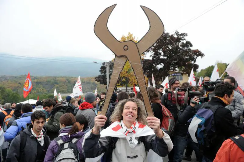 10:34 In prima fila al corteo No Tav sono presenti anche alcuni esponenti del centro sociale Askatasuna di Torino affiancati dal legale Gianluca Vitale. Tutti assicurano che sarà una manifestazione tranquilla, ma alcuni banchetti vendono pinze e cesoie per tranciare le reti che proteggono il cantiere