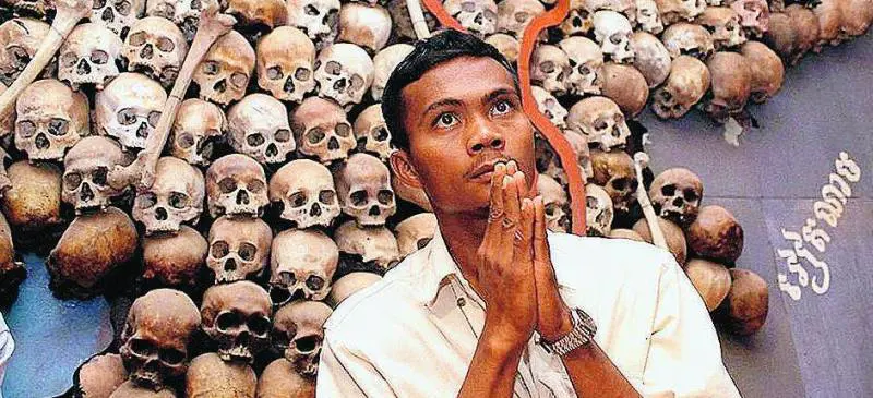 A Trong Bath sulla sommità di una collina sorgeva una fornace dove i nemici di classe venivano bruciati vivi. Le ossa carbonizzate venivano, poi, sparse nei campi come concime. Alla periferia di Phnom Penh sorgeva il campo S-21, il vecchio liceo Tuol Sleng, specializzato nell'eliminazione di bambini che i khmer rossi uccidevano con il coltello. Alle pareti della scuola, sono affisse, oggi, le foto di tutti i minori eliminati. «Stiamo facendo qualcosa che non è mai stato fatto prima nella storia dell'umanità», affermò, nel 1977, il braccio destro di Pol Pot, Ieng Saryil, in un colloquio con il giornalista italiano Tiziano Terzani. È una rarissima testimonianza. «Era allora difficile figurarsi che cosa davvero volesse dire», commentò Terzani.