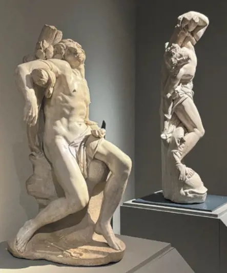 Nel 1623, mentre Bernini finiva l'Apollo e Dafne per Scipione Borghese, Urbano VIII già pensava di fare del più prodigioso artista sulla scena romana dopo Caravaggio il regista del Barocco. La mostra accompagnata da un catalogo ricco di contenuti a cura di Andrea Bacchi e Maurizia Cecconi, edito da Allemandi si snoda in sei sezioni. La prima è la più accattivante, perché affronta il problematico avvio di Gian Lorenzo scultore a fianco del padre Pietro Bernini. Mentre si dispiegano da un capo all'altro della sala, in felice contrappunto, le primizie del figlio da un lato il Putto con il Drago, dall'altro il San Sebastiano e il San Lorenzo e tutt'attorno statue autonome o di collaborazione con il padre, al centro sono schierate le Quattro Stagioni, divenute celebri da quando le scoprì Federico Zeri a Frascati. Nonostante l'inserimento di un secondo San Sebastiano proveniente dalla Francia, giudicato non autografo da autorevoli specialisti, si presti a polemiche che si auspica sfocino in un salutare dibattito critico, la prima sezione è formidabile. Si coglie subito la complicità tra padre e figlio, basata sulla scultura come mestiere e su un vorace interesse per le arti figurative. Pietro Bernini era nato a Firenze, Gian Lorenzo invece a Napoli, ma fu Roma che favorì la loro arte e rese immortale il secondo.