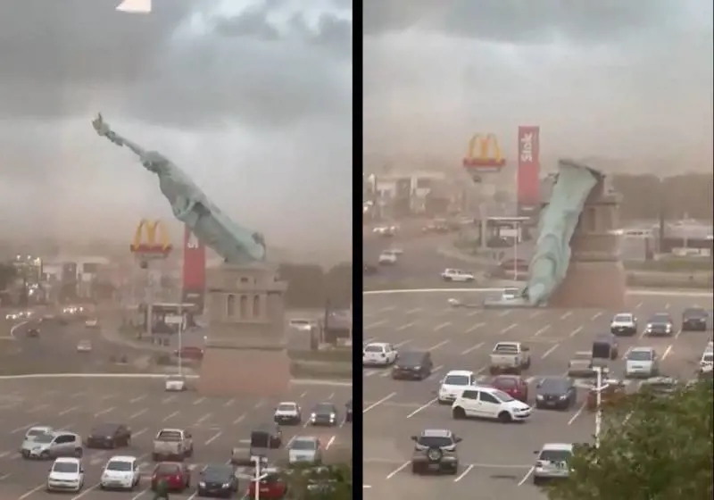 L'episodio, stando a quanto riferito dai quotidiani locali, si è verificato nel pomeriggio di lunedì 15 dicembre. Una forte tempesta con raffiche di vento superiori a 90 km/h si era abbattuta sulla zona. Il tornado è stato tanto violento da riuscire ad avere ragione di una statua alta circa 24 metri collocata nel parcheggio del megastore della catena brasiliana Havan. In uno dei video diffuso in rete si vede la statua - una replica della più famosa Statua della Libertà - ondeggiare a causa del vento e infine spezzarsi, crollando al suolo.