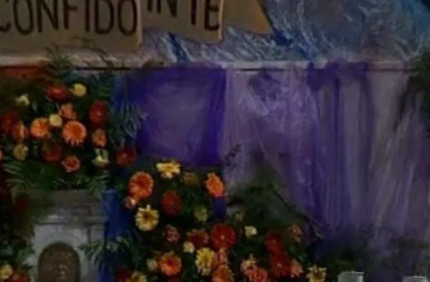 Nel drappo, a quanto raccontano i fedeli, mantiene ancora le sembianze di Gesù. Il tessuto del drappo, in organza, è stato realizzato dalle due donne che si occupano di curare gli addobbi nella chiesa.