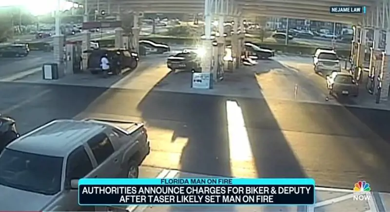 Un agente di polizia ha sparato con il taser in faccia a un motociclista in una stazione di servizio di Wawa, in Florida, accendendo una palla di fuoco che"lo ha cucinato vivo".