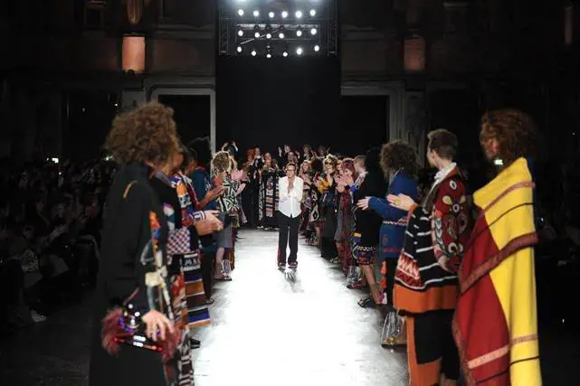 Ma sono le ciabattine, piatte e ricamate di pietre, il «must» che ritorna anche con le creazioni di Stella Jean, che al solito mixa il vecchio continente dei ritratti aristocratici con le maschere degli avi africani. La lavorazione artigianale degli scarti industriali, detta «Fluffy», aggiunge ai modelli il tocco etico-sostenibile.