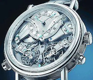 Sono veramente infiniti i modi in cui il segnatempo si manifesta ai nostri occhi, ed è impossibile comunicarli tutti, ma in questa sede abbiamo voluto esplicitare alcuni «volti» di particolare attualità, a partire da «sua maestà» la grande complicazione, per esemplificare la quale, abbiamo scelto il Tradition Chronographe Indépendant 7077 di Breguet , in oro bianco da 44 mm, dotato di due meccanismi manuali indipendenti: il primo è preposto all'indicazione di ore/minuti (21.600 a/h e 50 ore di riserva di carica); il secondo è dedicato al cronografo e opera a 36.000 a/h (bilanciere in titanio). Un sofisticato sistema brevettato composto da una molla a lama (innescata dal pulsante di azzeramento) ha bypassato l'esigenza di un secondo bariletto, limitando ad un massimo di 20 minuti (lancetta retrograda) la misurazione cronografica.