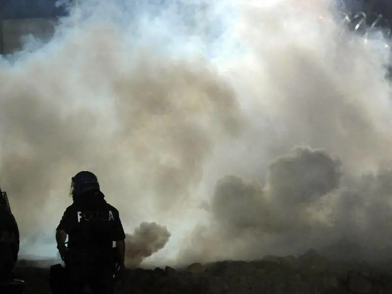 La serata, iniziata solo con qualche slogan e poco altro, ha subito un escalation quando un operaio del cantiere si è avvicinato alle reti, presidiate da vicino dai militanti, per sistemare un gruppo elettrogeno. Contro di lui un fitto lancio di petardi.